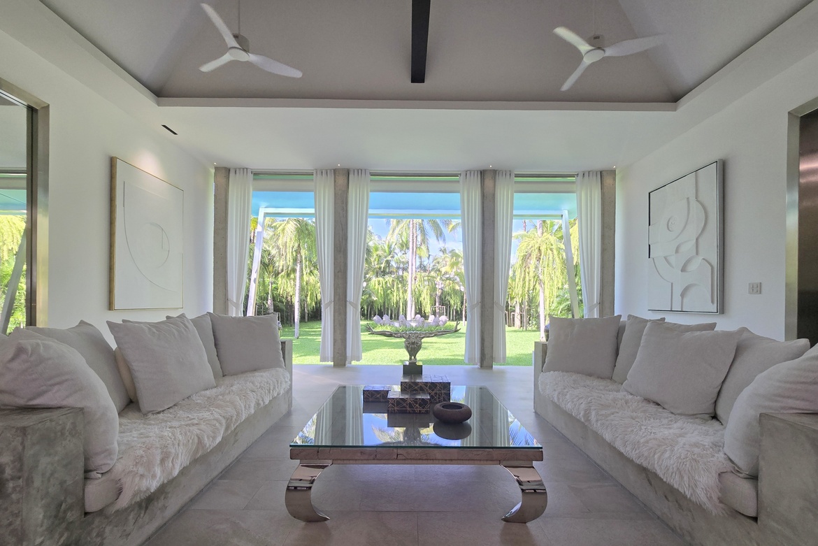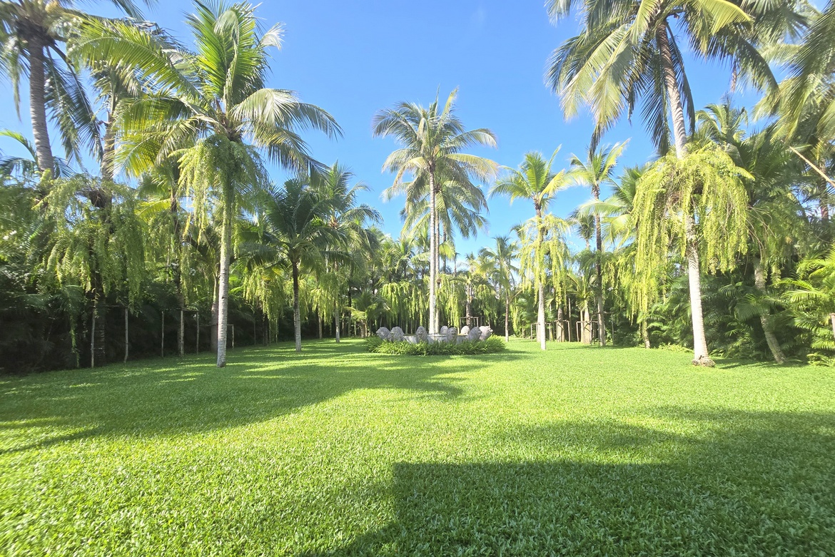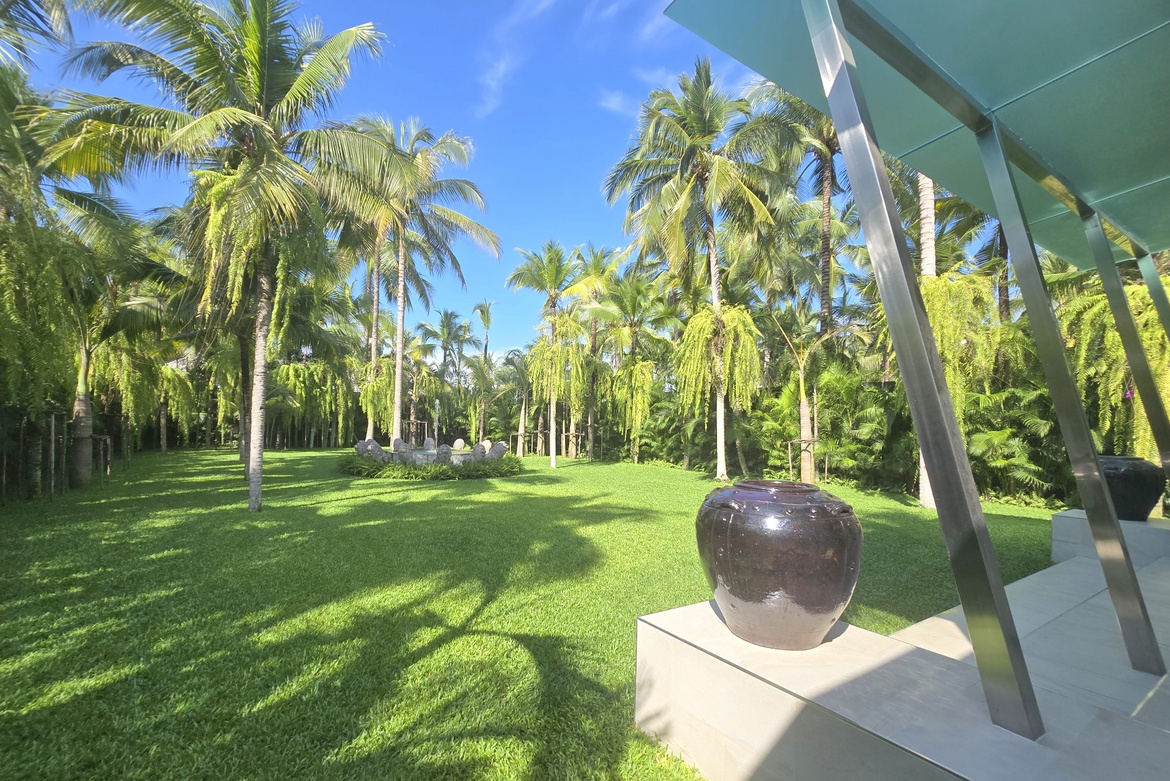 - Large, shaded terrace with views over the pool and tropical landscaped garden