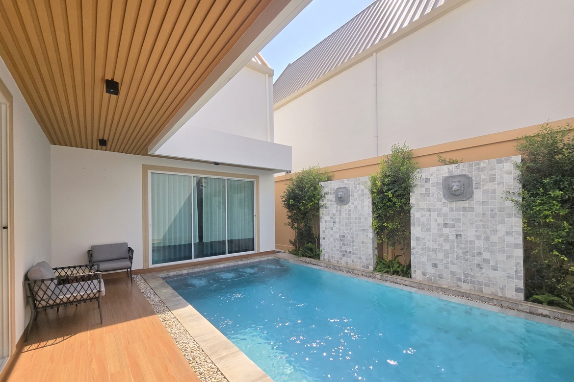 - Private 3.5 x 7-meter swimming pool with a Jacuzzi seating bench.