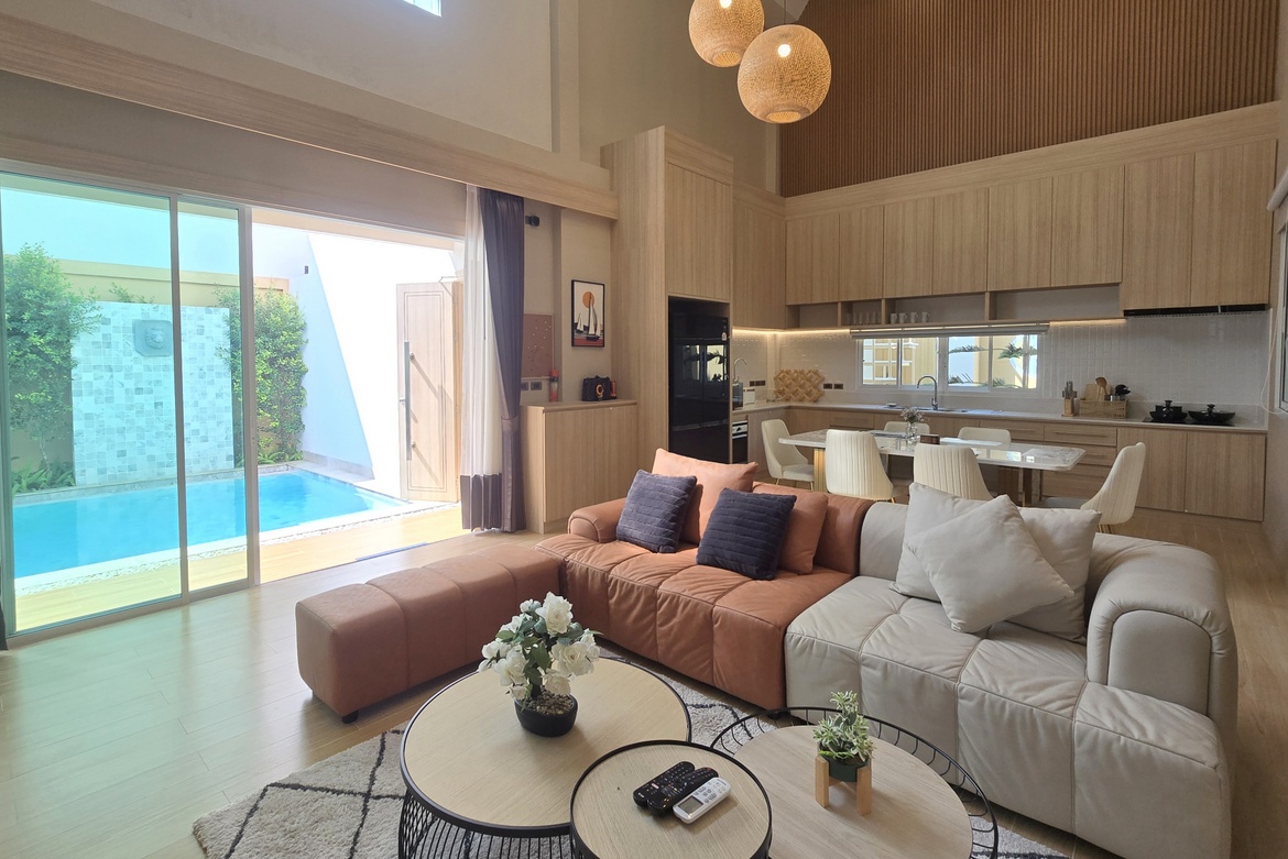 This fully furnished, move-in-ready villa offers an intimate retreat characterized by privacy and light-filled spaces. Located in a tranquil setting that balances rural charm with quick city access, the home features exceptional 3.3-meter ceilings, soaring to 6 meters in the living and dining areas to create an expansive, airy atmosphere.